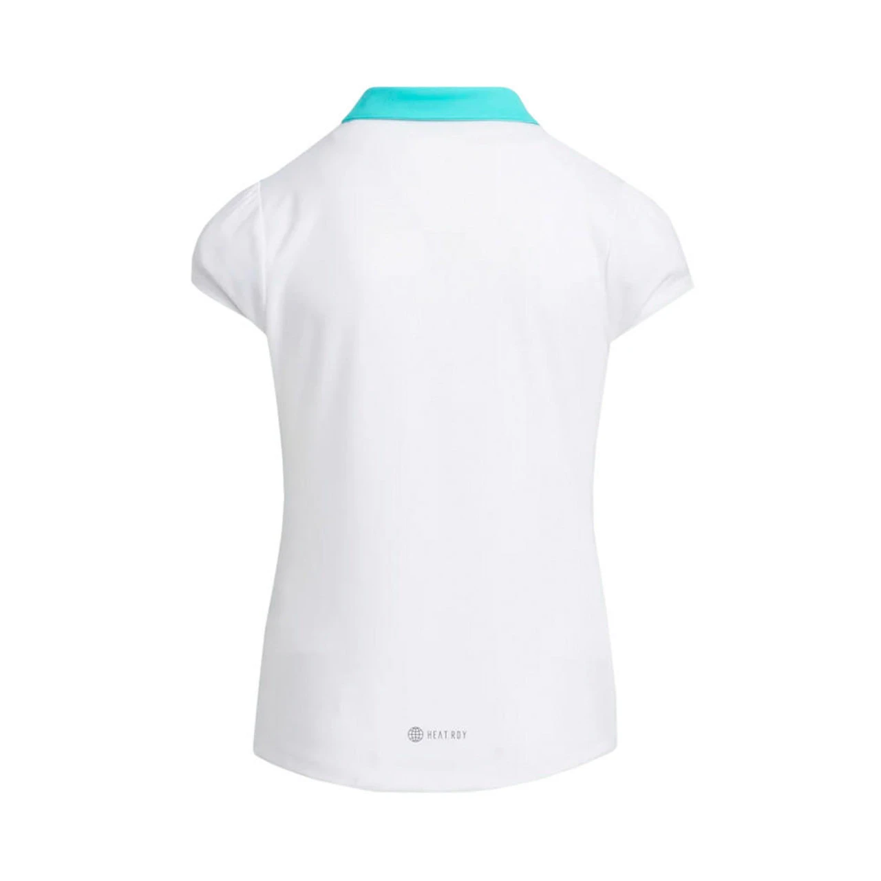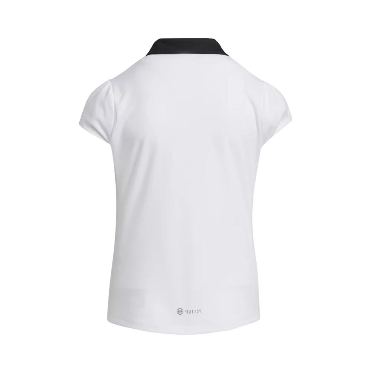 This juniors’ adidas golf polo shirt sees you through 18 holes in comfort and style. The soft fabric is made with HEAT.RDY to keep you cool in warm conditions. Cap sleeves and a bold design give it a sleek look. This garment is made with a yarn which contains 50% Parley Ocean Plastic — reimagined plastic waste, intercepted on remote islands, beaches, coastal communities and shorelines, preventing it from polluting our ocean. This garment contains at least 40% recycled content in total.