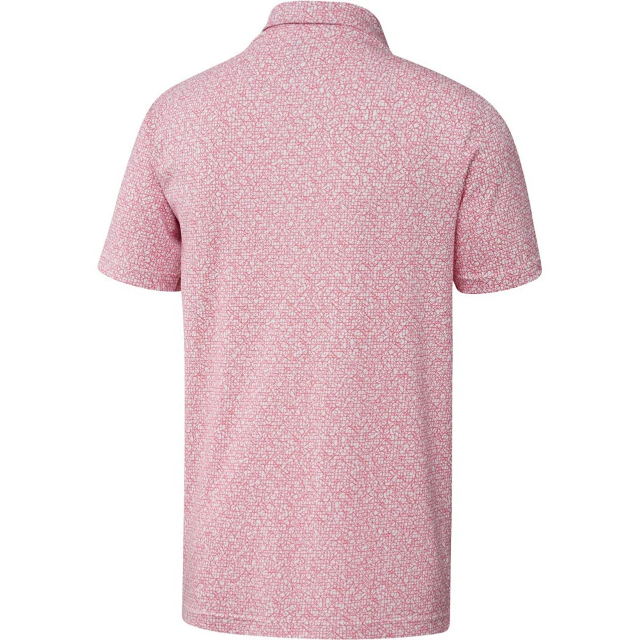 From long drives to short putts, this adidas golf polo shirt has your back on the course. The soft, durable fabric has a breathable feel, and four-way stretch ensures you can swing and flex with no restriction. Built-in UV coverage lets you play with confidence on sunny days. An allover print elevates the look and wears well at the clubhouse after your game.