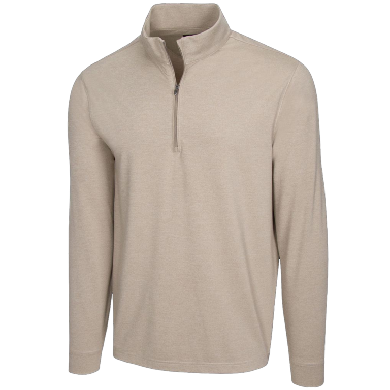 The Greg Norman Heathered 1/4 Zip Mock is a luxuriously soft Jacquard fabric with built-in PLAY DRY moisture-wicking technology. With added stretch characteristics, this 1/4 zip mock is perfect for a chilly tee time or casual weekend get-together.