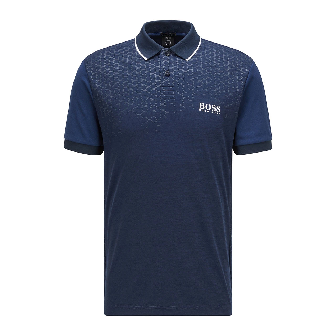 The Pauletech 1 Polo is new for the summer 2021 Hugo Boss catalog. Constructed with a 3 button placket and melange S.Café® moisture-wicking fabric, the Pauletech 1 polo is the ultimate blend of comfort and style. The contrast Hugo Boss left chest and back neck logo, panel detailing with color accents, and Boss branding under the placket all bring style and luxury with you wherever you wear it.