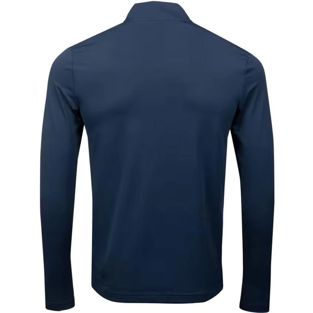 The Hugo Boss Piraq Pullover is new for the fall 2021 season. The quarter zip pullover is made from recycled polyester blend for an athletic fit and more sustainable manufacturing methods. The contrasting BOSS logo on the left shoulder and back neck make for an outerwear piece that can be worn form the course to the clubhouse.