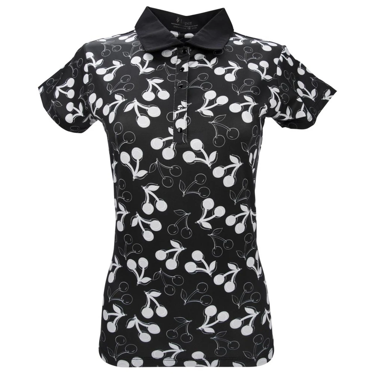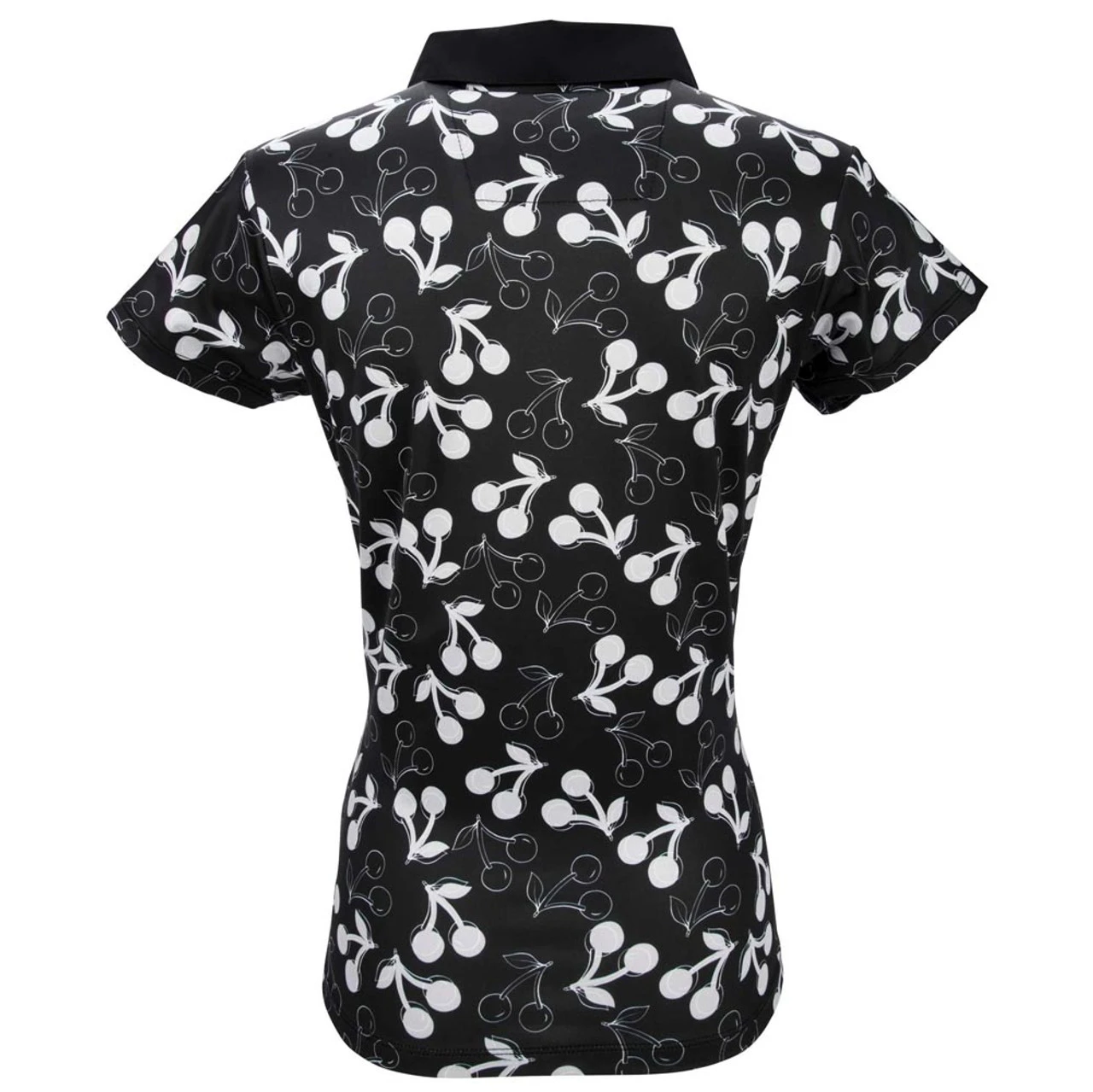 The Women’s Cherry Short Sleeve Polo is constructed from a beautifully printed jersey that is soft on the skin, yet cool to the touch. This short-sleeve polo is made using a 92% polyester / 8% spandex blend for the most comfortable, versatile piece of sportswear. The solid contrast self collar with 5-snap placket presents an attractive, sleek look for the female golfer. Using Delux Dri™ moisture wicking technology, the lightweight jersey fabric will keep you cool and dry from the first tee to the final green. With the signature Lopez flame icon at the right hip, this polo boldly highlights the golfer as she conquers the eighteen holes.