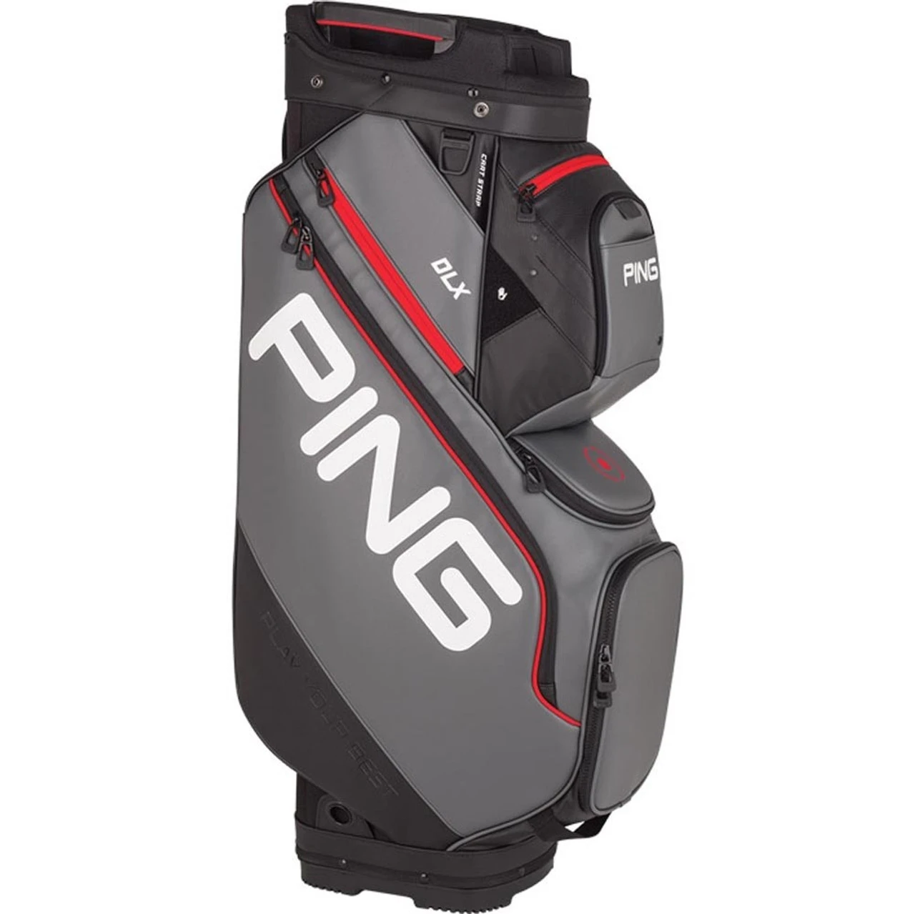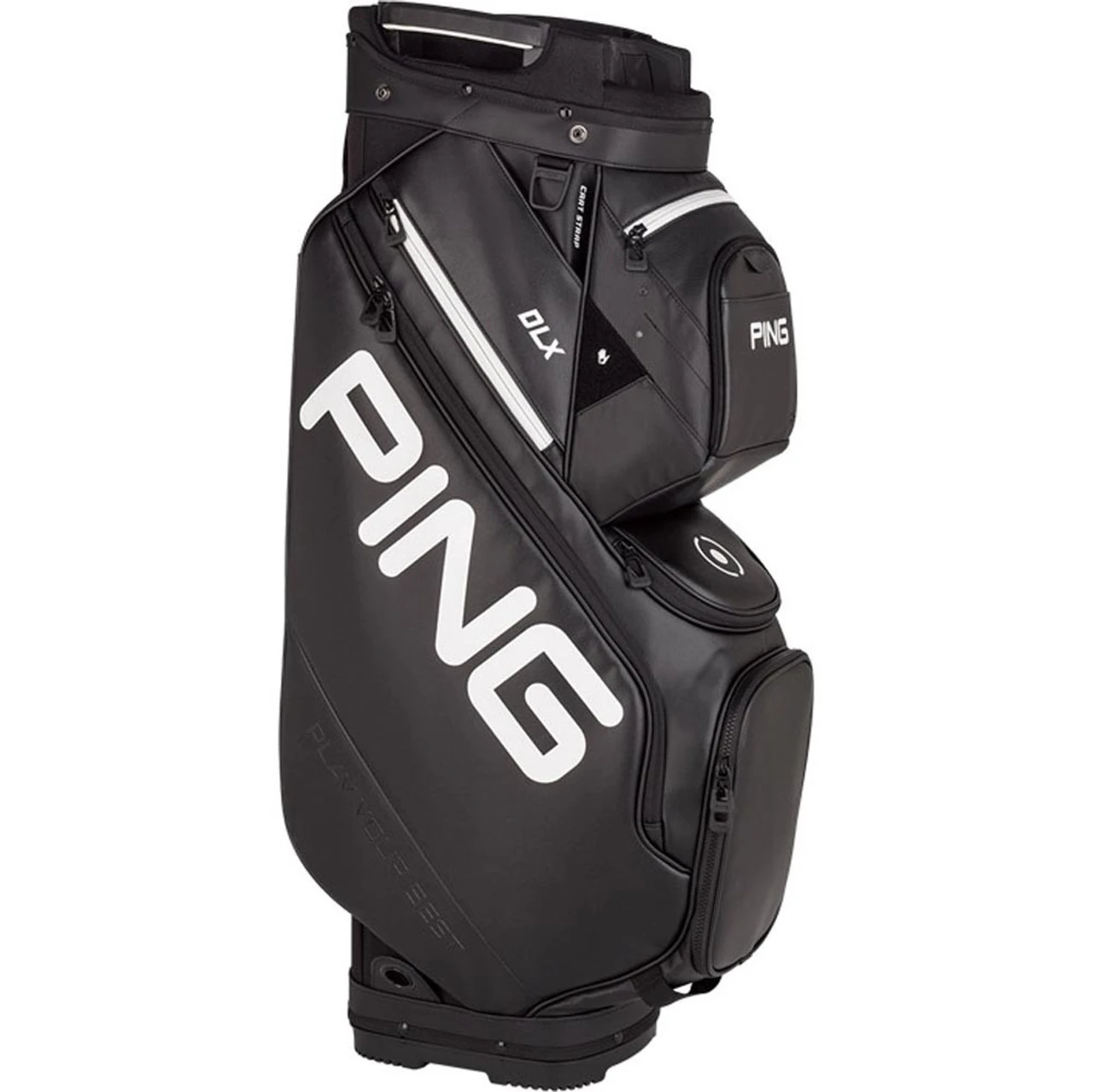 The PING DLX cart bag features tour-inspired materials, a refined style and new added conveniences for virtually every accessory. Wide club wells, 14 pockets, soft-molded handles and a durable polyurethane exterior ensure that the PING DLX Cart Vag will accommodate every need and hold up to the heaviest use.