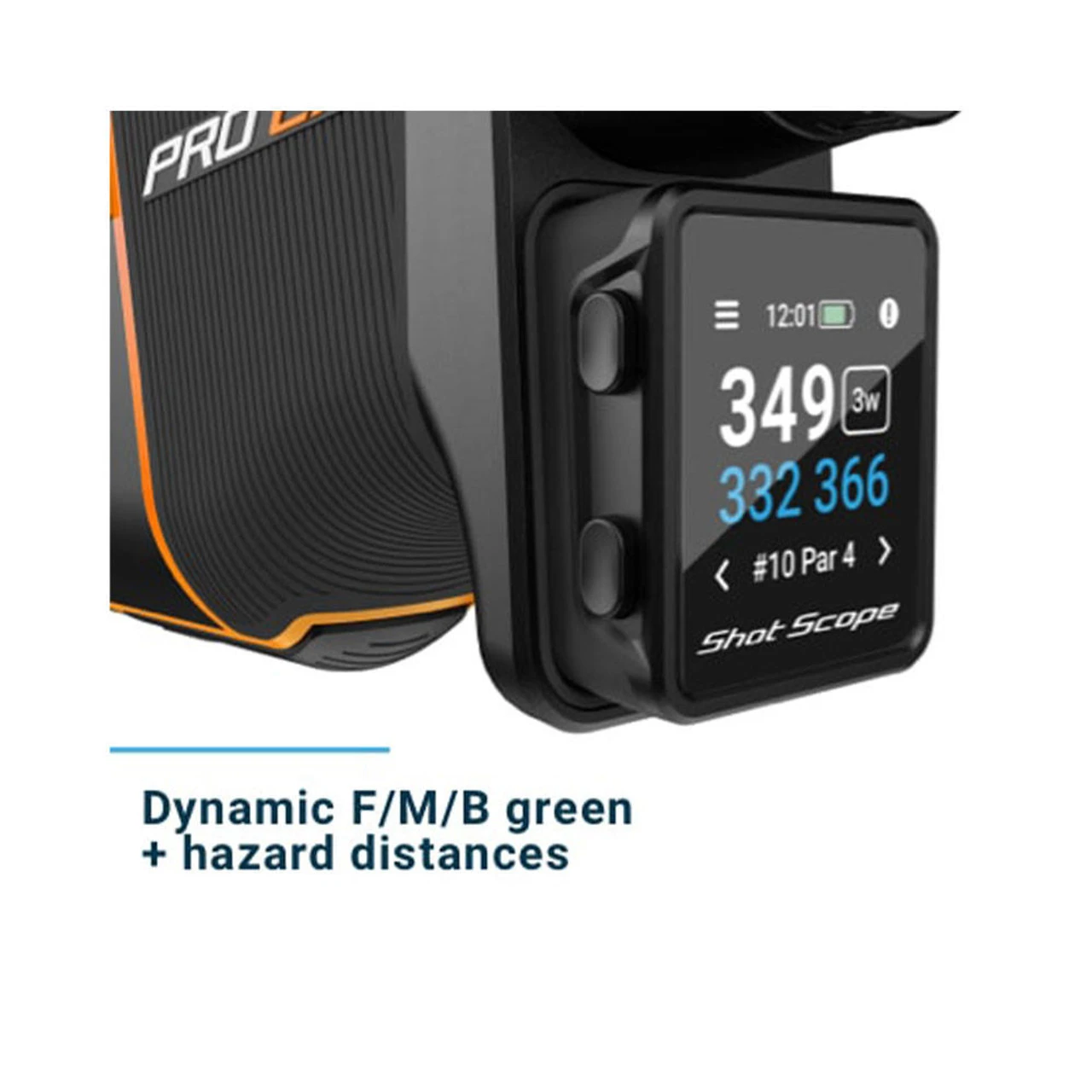 Front Middle Back The PRO LX+ can be used like a typical rangefinder for distances to the pin – combine that with GPS distances to the F/M/B of the green and instantly you know exactly where the pin is located on the green. Layup & carry distance for every hazard available in yards & meters.