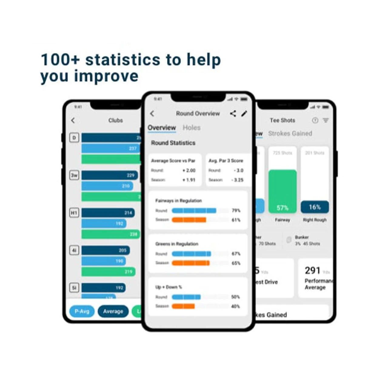 Statistics Over 100 statistics that can be broken down by lie type, distance, club used, proximity, round, season and much more. Statistics on tee shots, approaches, short game, putting, scoring and full round/season. Strokes Gained analytics platform included for advanced statistic analysis. PinCollect technology provides enhanced approach, short game and putting statistics through industry leading putting info.