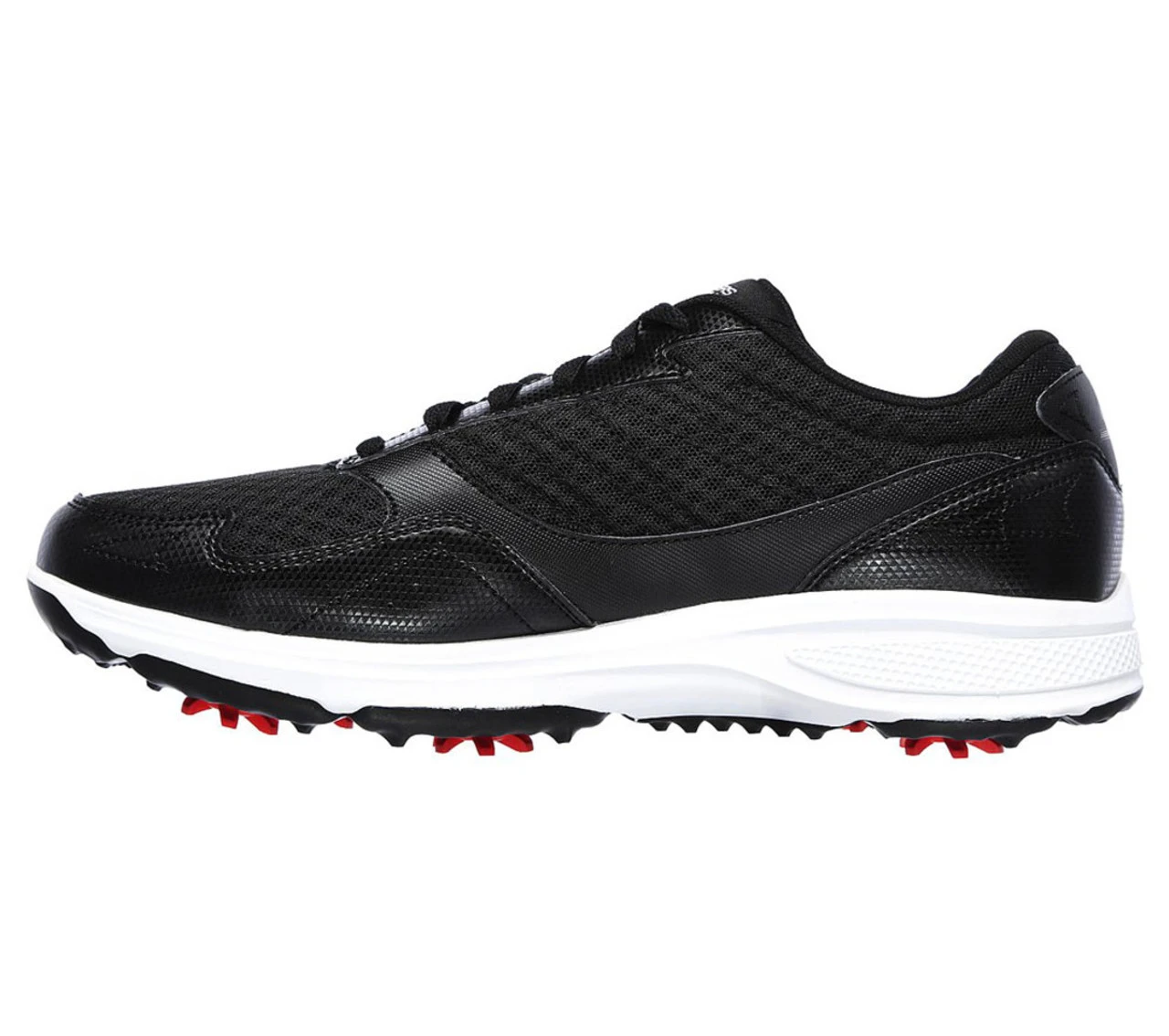 The Go Golf Torque Sport by Skechers is constructed of a lightweight, synthetic and mesh upper and is super comfortable thanks to the responsive ULTRA GO cushion. The Relaxed Fit design is similar to your favorite walking or athletic shoe, and offers tremendous support. Each step and impact is absorbed by the GOGA MAX insole which is designed for high-rebound cushioning. Skechers’ H2GO Shield waterproof protection keeps you dry on the wettest of days.