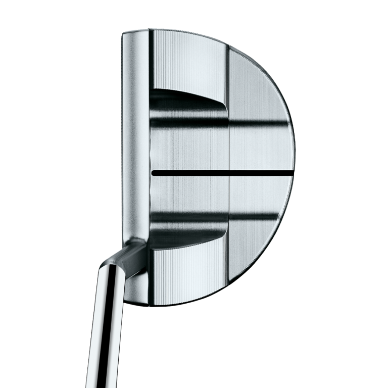 The Flowback 5.5 is your modern, rounded, mid-mallet, but with a slantback neck. This promotes more toe flow, and suits the player with more arc in their stroke. The combination of the 6061 aluminum sole plate and stainless weights, enhances the MOI and provides supreme stability.