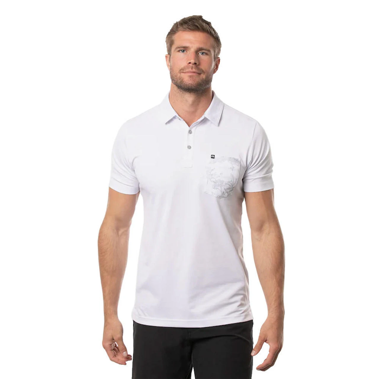 Keep your style clean in the IT’S A RENTAL men’s polo. With a unique floral print on the pocket and inner-collar, dressing up or down has never looked better.