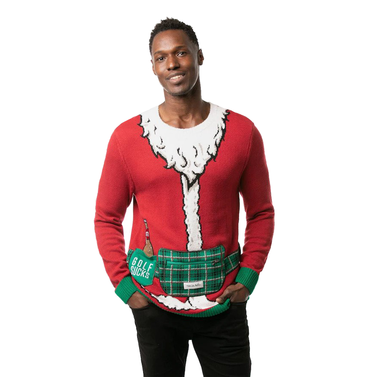 Travis Mathew saw your ugly Christmas sweater and decided to one up you. This masterpiece of holiday perfection features a functional fanny pack and bottle koozie sewn in to keep you prepared for the party.