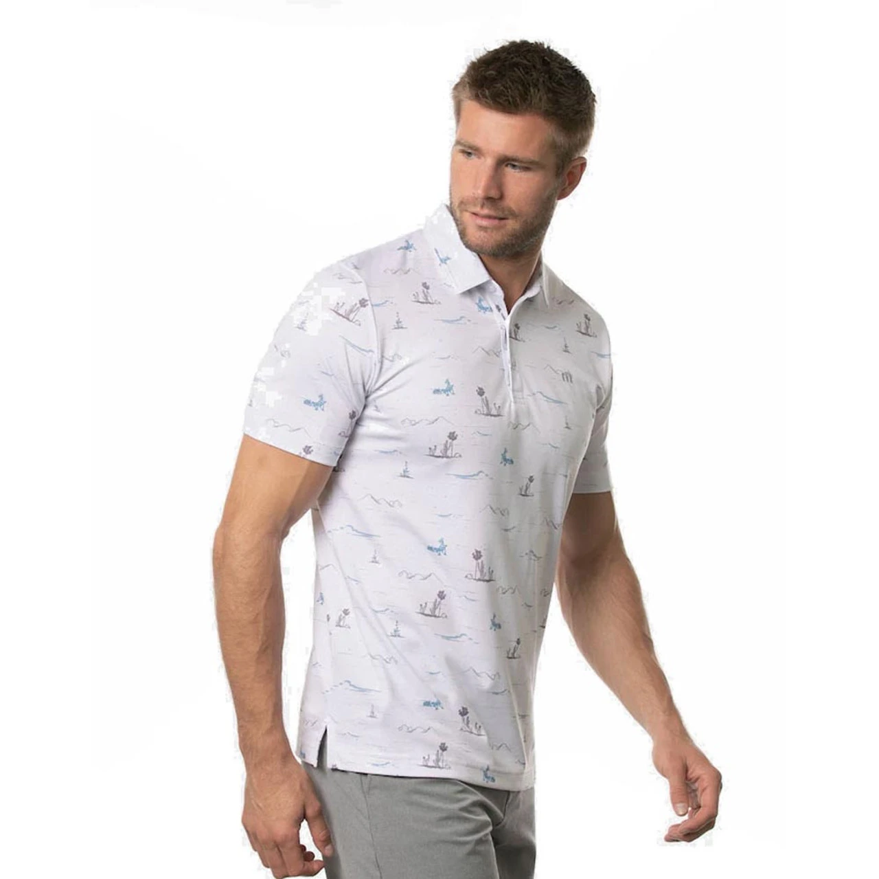 With the Travis Mathew Warp Drive polo, it’s easy to become the life of the party. Especially when you’re wearing a fun, all-over print featuring vacation vibes. Built in collar stays maintain that classy, professional look deep into the night.